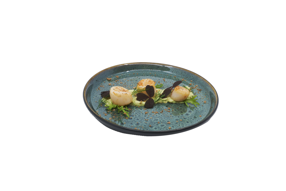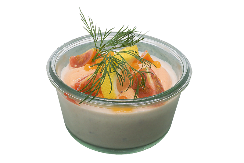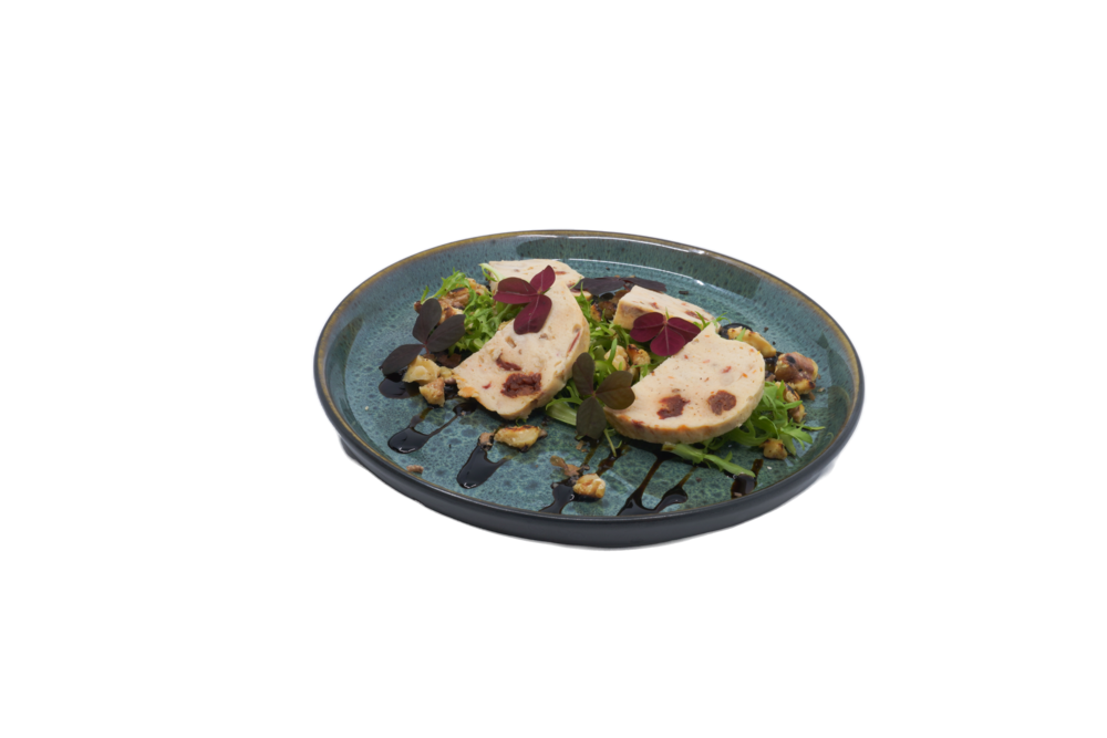 bund af mix salat, hertil kræmmerhus med urter creme & asparges