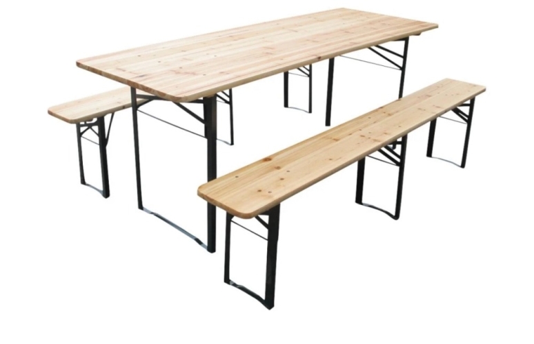Vores borde og bænkesæt er ideelle til både indendørs og udendørs brug. Det enkle låsesystem med kliklås under bordet og bænkene gør det nemt at folde benene sammen, hvilket sikrer hurtig opsætning og nedtagning. Dette gør dem perfekte til havefester, firmaarrangementer og store festivaler.