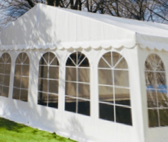 Vores teltudlejning leverer festtelte med én dør, som kan placeres efter dit ønske. Teltet har mange vinduespartier, der sikrer godt lysindfald og en behagelig atmosfære indenfor.