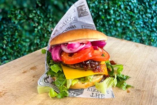 Burger foodtruck med vores lækre signaturburger med hemmelig BBQ-sauce.